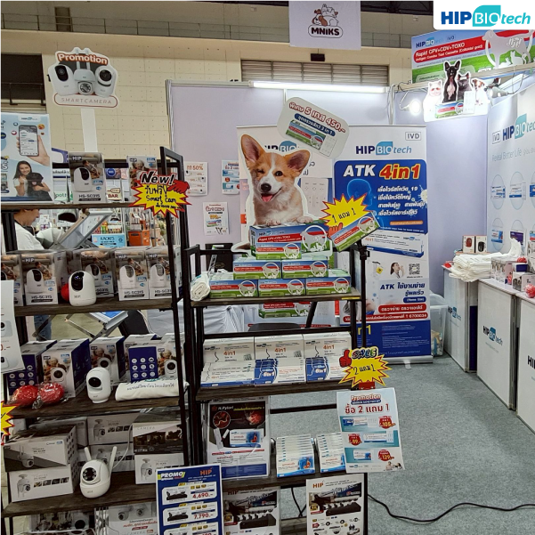 บรรยากาศรอบบูธเต็มไปด้วยเหล่าคนรักสัตว์ที่มาหยุดดูสินค้า โดยเฉพาะ ชุดตรวจสุขภาพสัตว์ 3 in 1เหมาะสำหรับเจ้าของสัตว์ที่ต้องการดูแลสุขภาพน้องหมาและน้องแมวอย่างใกล้ชิด