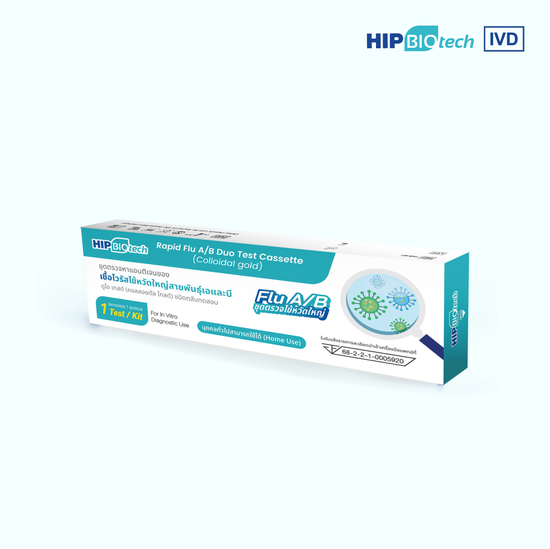 HIP ชุดตรวจหาแอนติเจนต่อเชื้อไข้หวัดใหญ่ A และ B เป็นทางเลือกที่สะดวก รวดเร็ว และใช้ง่ายสำหรับการตรวจคัดกรองเบื้องต้นจากตัวอย่างเยื่อบุโพรงจมูกด้านหน้า โดยใช้เทคโนโลยีอิมมูโนโครมาโตกราฟี (Immunochromatography) ที่มีความแม่นยำสูง เหมาะสำหรับบุคคลทั่วไปที่ต้องการตรวจสอบสุขภาพเบื้องต้นด้วยตนเอง ช่วยเพิ่มความมั่นใจในการดูแลสุขภาพ แต่ทั้งนี้ผลการตรวจไม่ควรใช้เป็นข้อสรุปเพียงอย่างเดียวในการรักษา ควรปรึกษาแพทย์เพื่อการวินิจฉัยและการดูแลที่ถูกต้อง